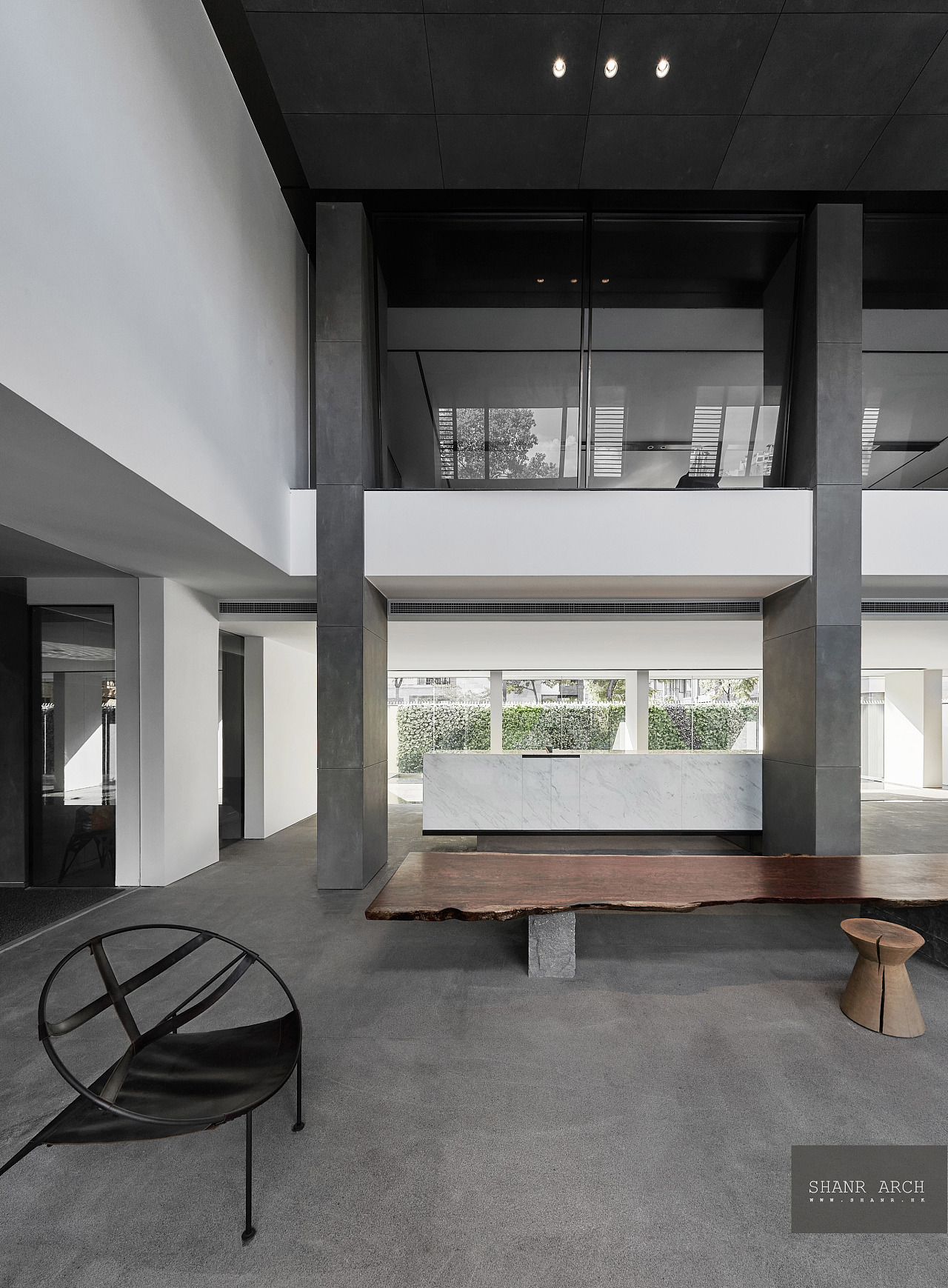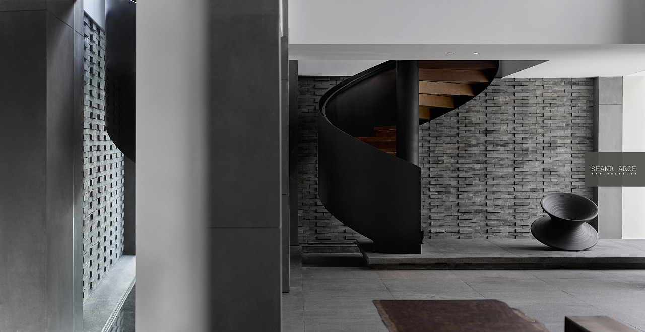 以聯動空間的理念選擇以水磨石現澆一體化制作與年輪碾壓過的銹鐵,表達一種自然天成的物本源的追求,以優質的材料,布置考究的燈光和精心的細節處理來強化空間表達。