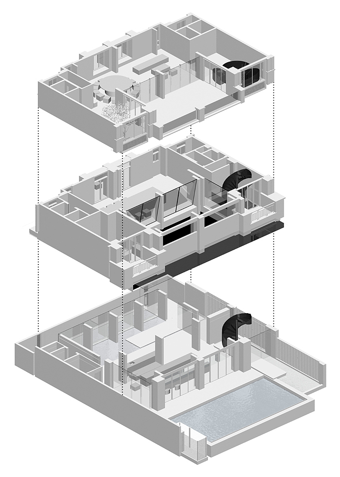 設計師不同于常規意義上的體積規劃,以均質空間的思維方式對空間的不穩定性尋求新的平衡,在體積規劃的思維定式中,發掘設計聯系建筑的的獨特性打造一個用以承載需求而非粘貼形式的設計。