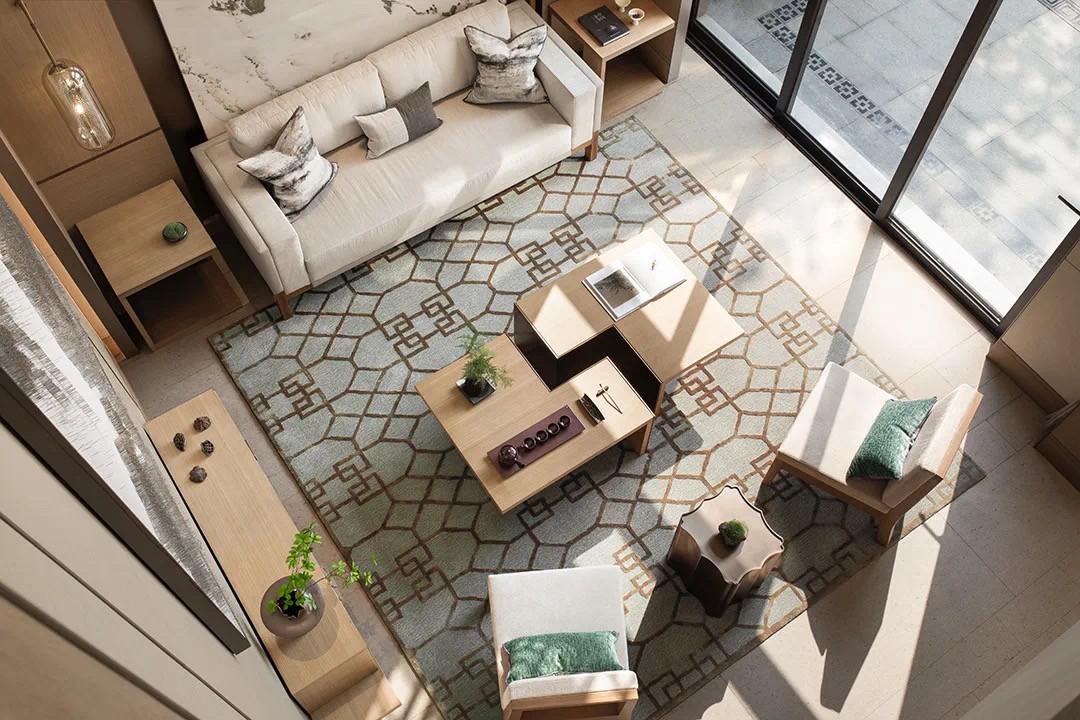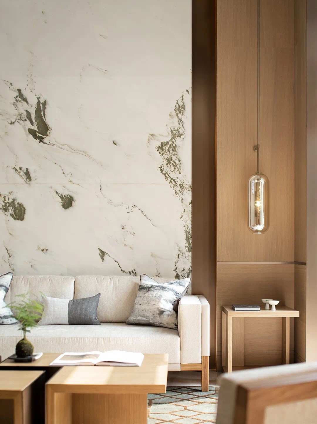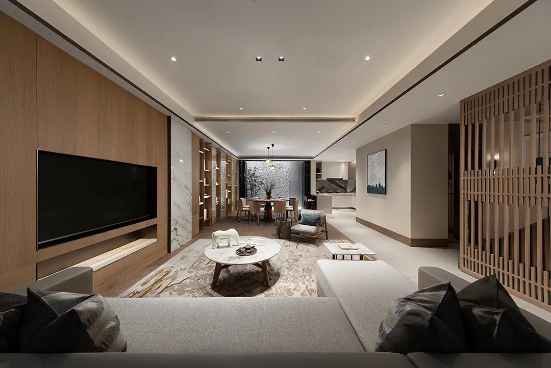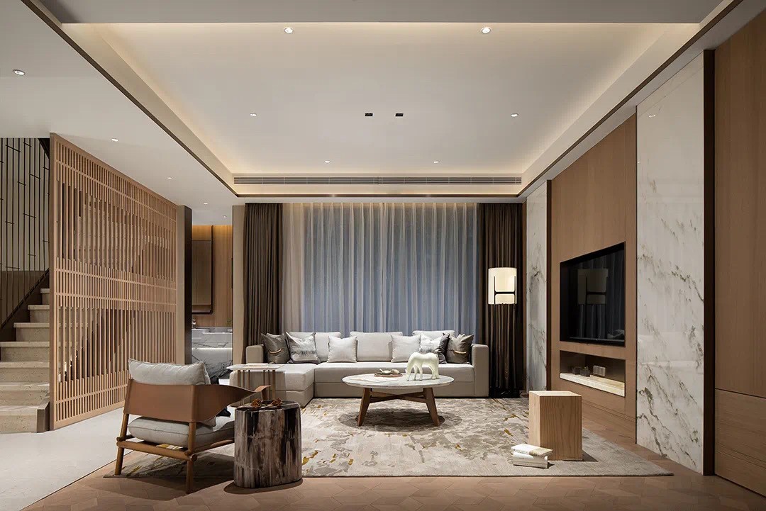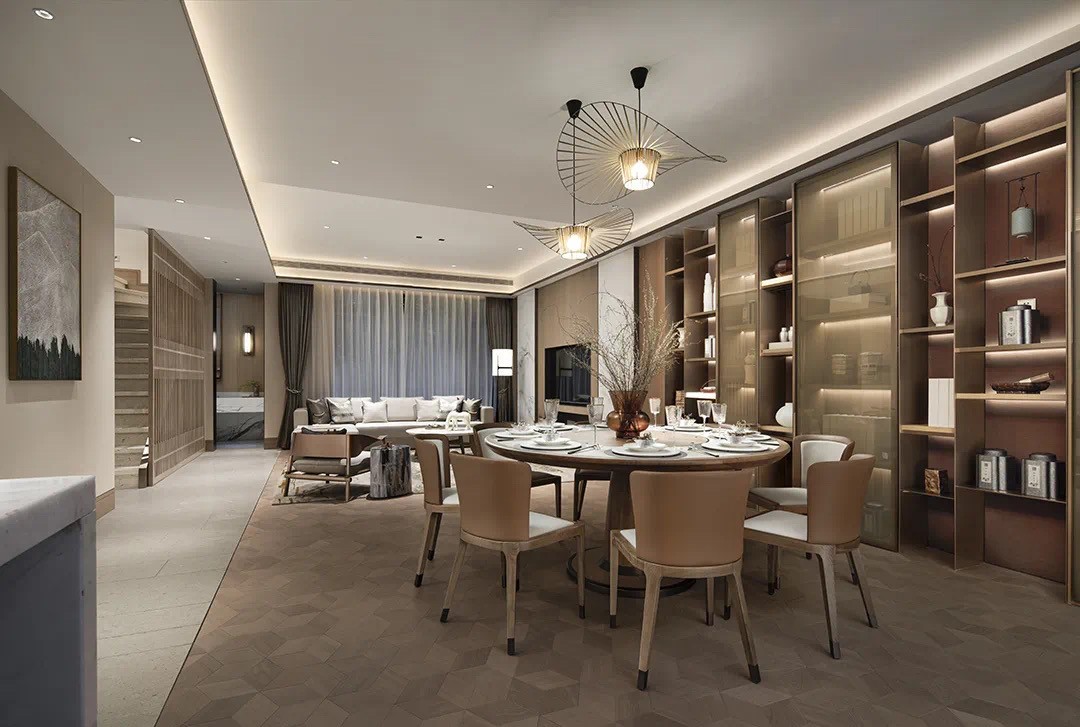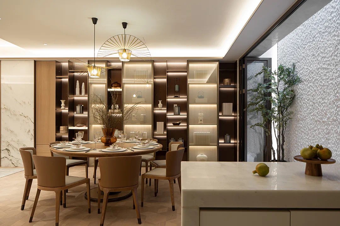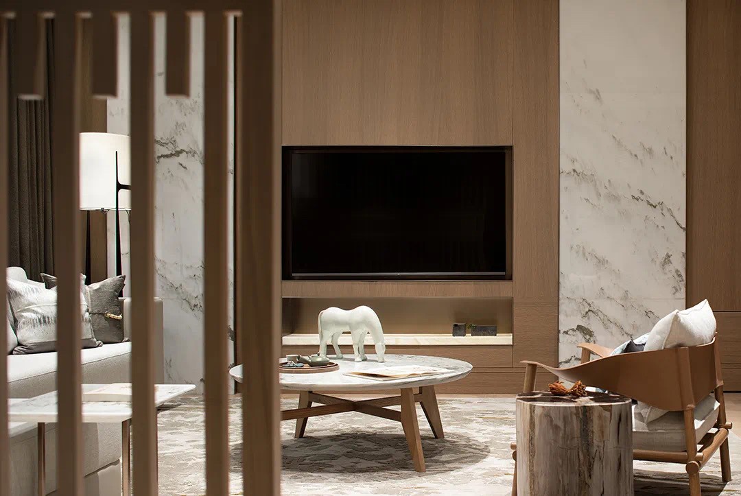 設(shè)計(jì)師倡導(dǎo)「詩(shī)性東方」獨(dú)特語(yǔ)境下的設(shè)計(jì)表達(dá),主張室內(nèi)設(shè)計(jì)從建筑、景觀概念切入。設(shè)計(jì)師圍繞“秀雅詩(shī)性”、“高貴平和”、“國(guó)際東方”三大議題鋪陳開(kāi)來(lái),探索東方哲思啟迪下材料和光影演繹的宜居實(shí)踐,以空間寫(xiě)詩(shī)。