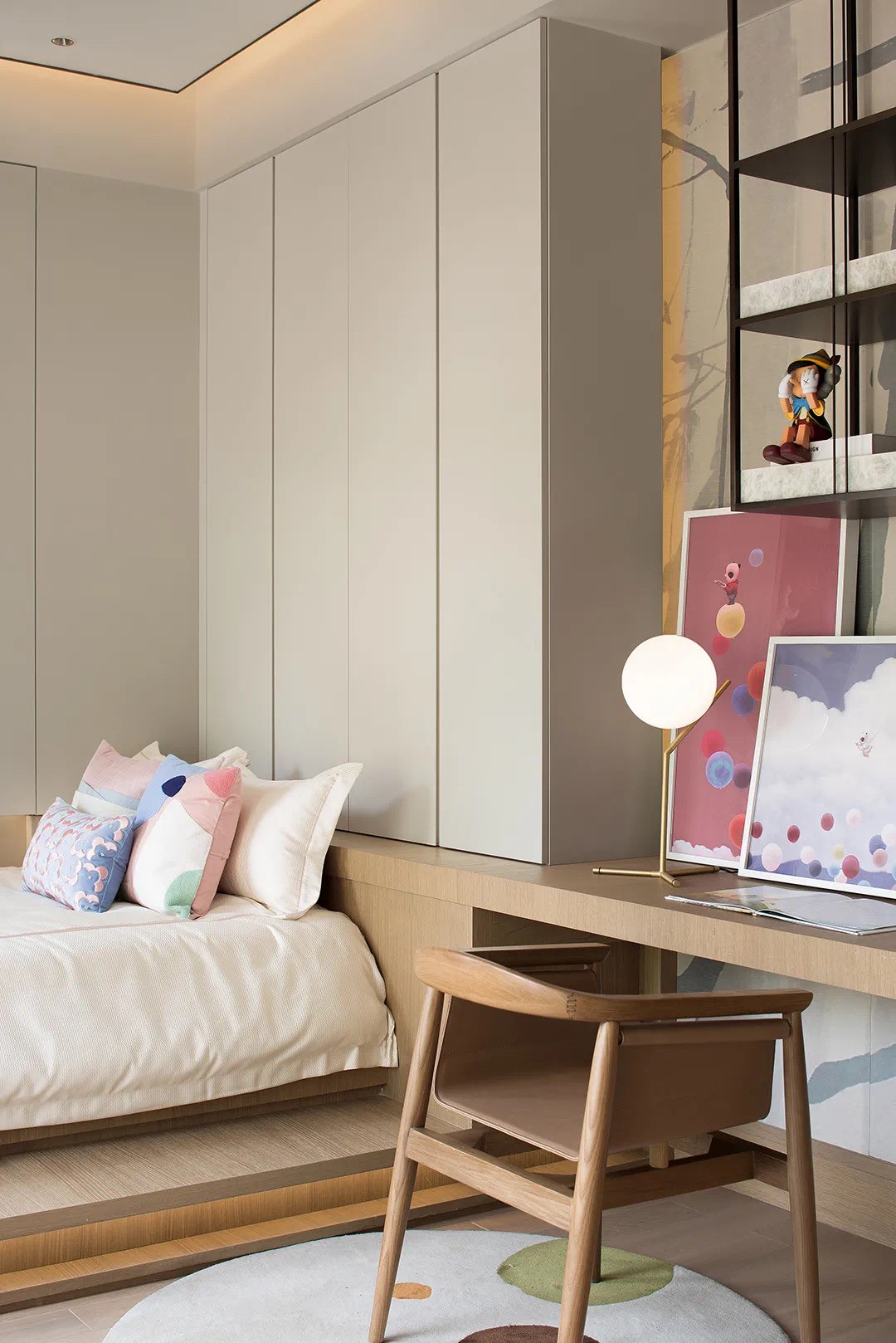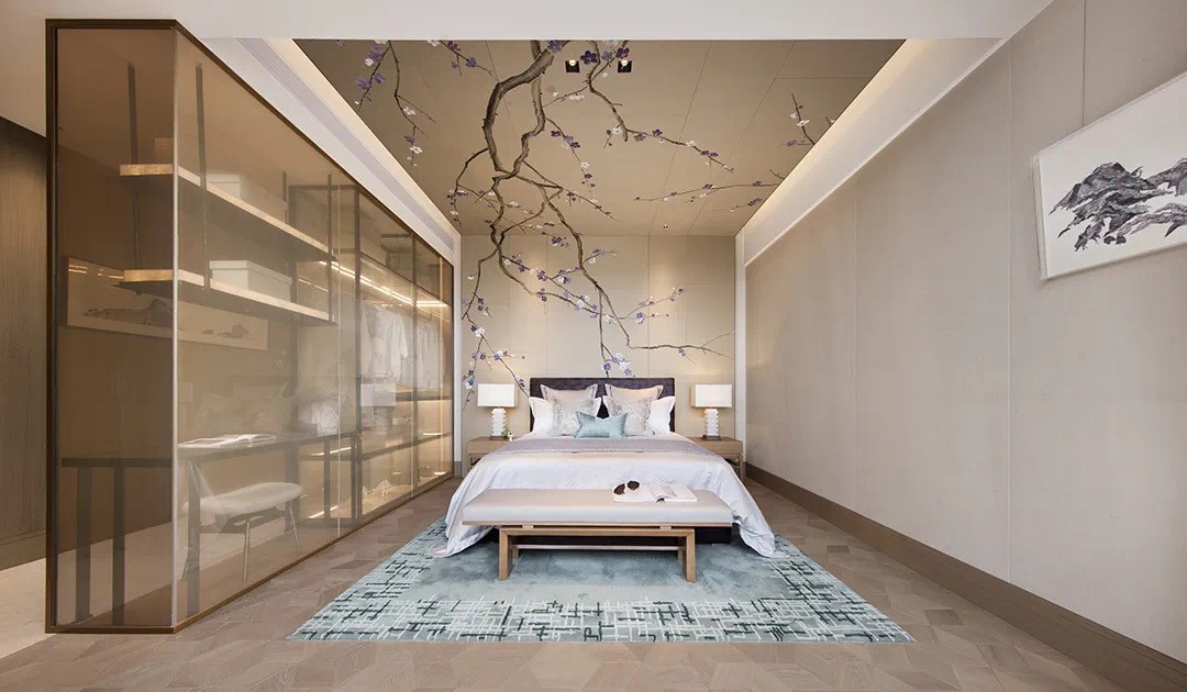 以“梅”為內(nèi)在精神,從壁延展到天花,無(wú)限延伸的視覺(jué)感,于屋主而言,有如文人精神之志存高遠(yuǎn)。